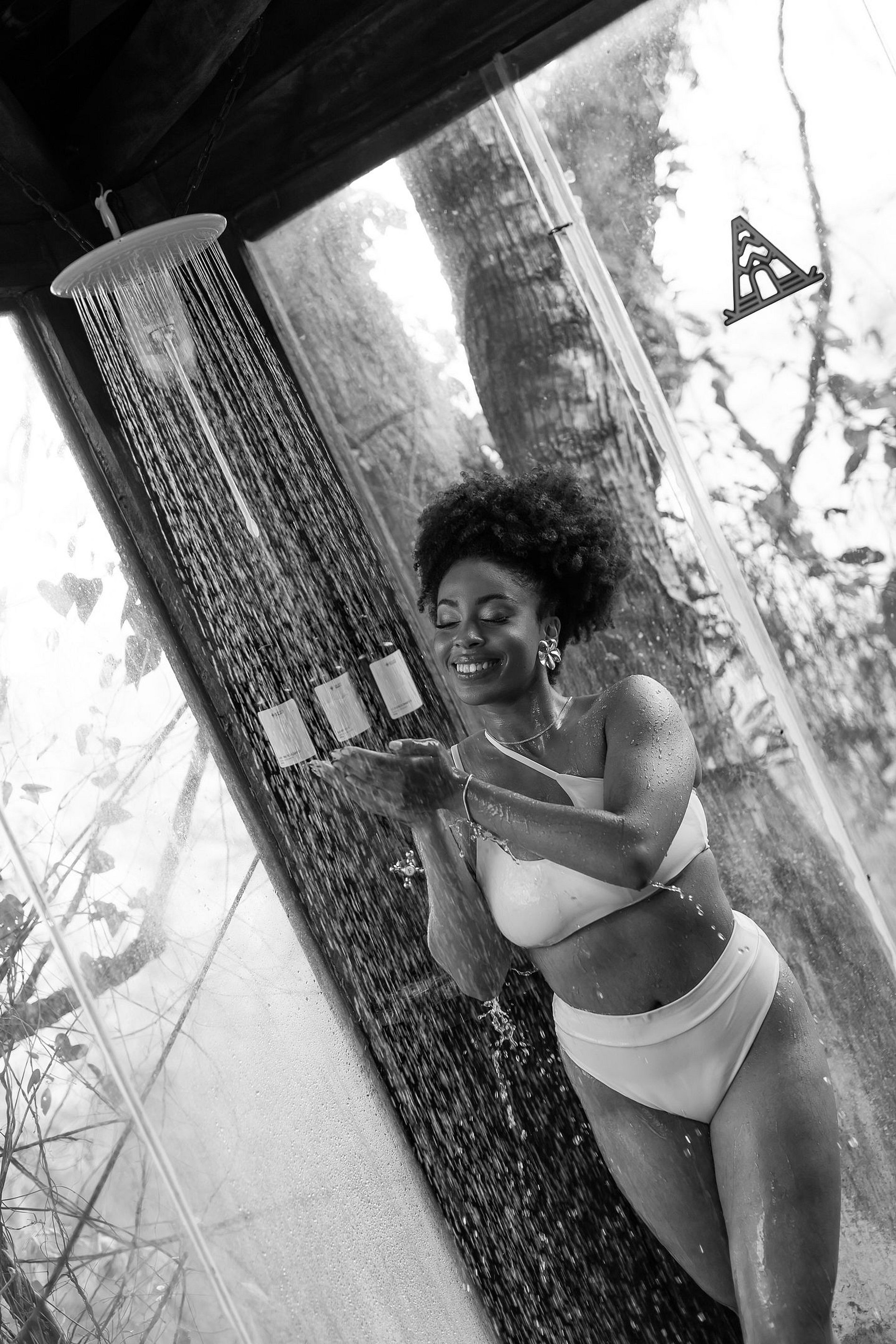 A cozinha e o banheiro são externos, seguindo a proposta de contato com o ambiente, mas são totalmente privativos e contam com fogão a gás e chuveiro quente.